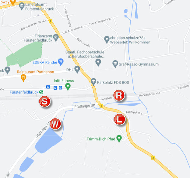 - [P] ist Pfaffing (8 % Steigung), wo die Urkirche von Fürstenfeldbruck steht. Über Wagelsried führte eine Straße dorthin und dann über Gelbenholzen weiter zum Kloster Fürstenfeld, wo