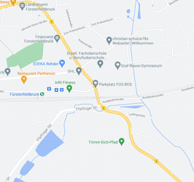 Die B2 vor Bruck. [Quelle: GoogleMaps, 2021 GeoBasis-DE/BKG (2009)]